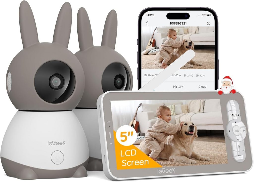 【LCD Split Screen & APP Control 】-2 in 1 ieGeek wifi baby monitor . LCD split control: 5”screen coverage 1000ft,equipped with two cameras meets your monitoring needs in different rooms (no wifi ),App control: If you want to go out, you can obtain information and control through the mobile app anytime and anywhere. Whether it’s a mother cooking in the kitchen or a father leaving for the airport early in the morning, they can all check on baby in real time.